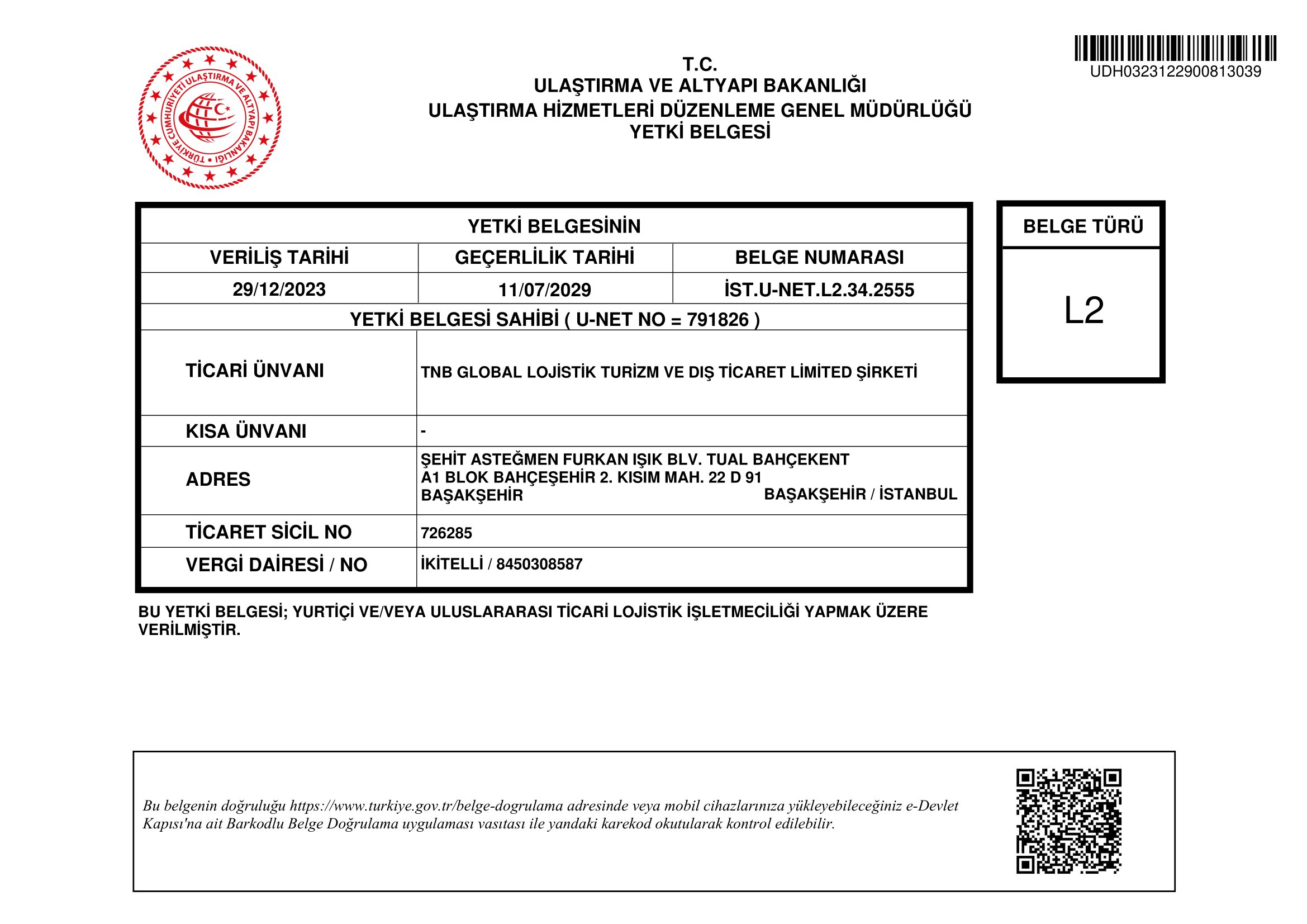 L2 YETKİ BELGESİL2 yetki belgesi , yurt içi ve uluslararası lojistik işletmeciliği yapan gerçek ve tüzel kişilere Ulaştırma ve Altyapı Bakanlığı tarafından ÜDY3 ve ODY3 belgeli en az birer yönetici bulunduran işletmelere verilen bir belgedir.